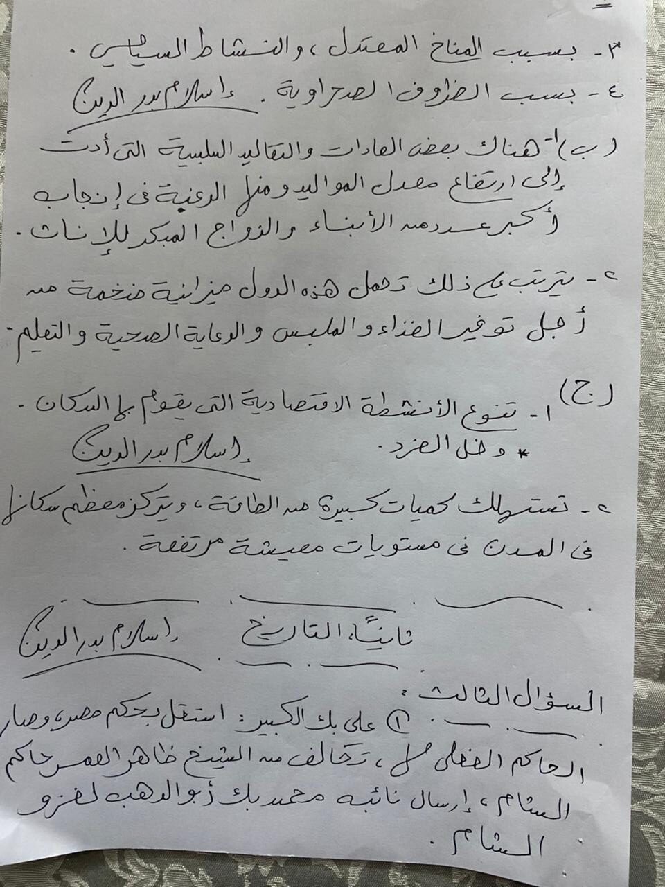 - السؤال الثالث اعتمد على التحليل وربط المعلومات.