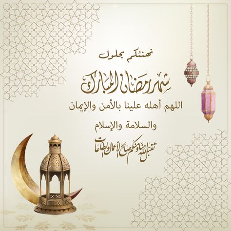 - مع إشراقة هلال رمضان، نتمنى لكم صيامًا مقبولًا وقيامًا مباركًا، وأن يعيده الله عليكم أعوامًا عديدة وأزمنة مديدة.